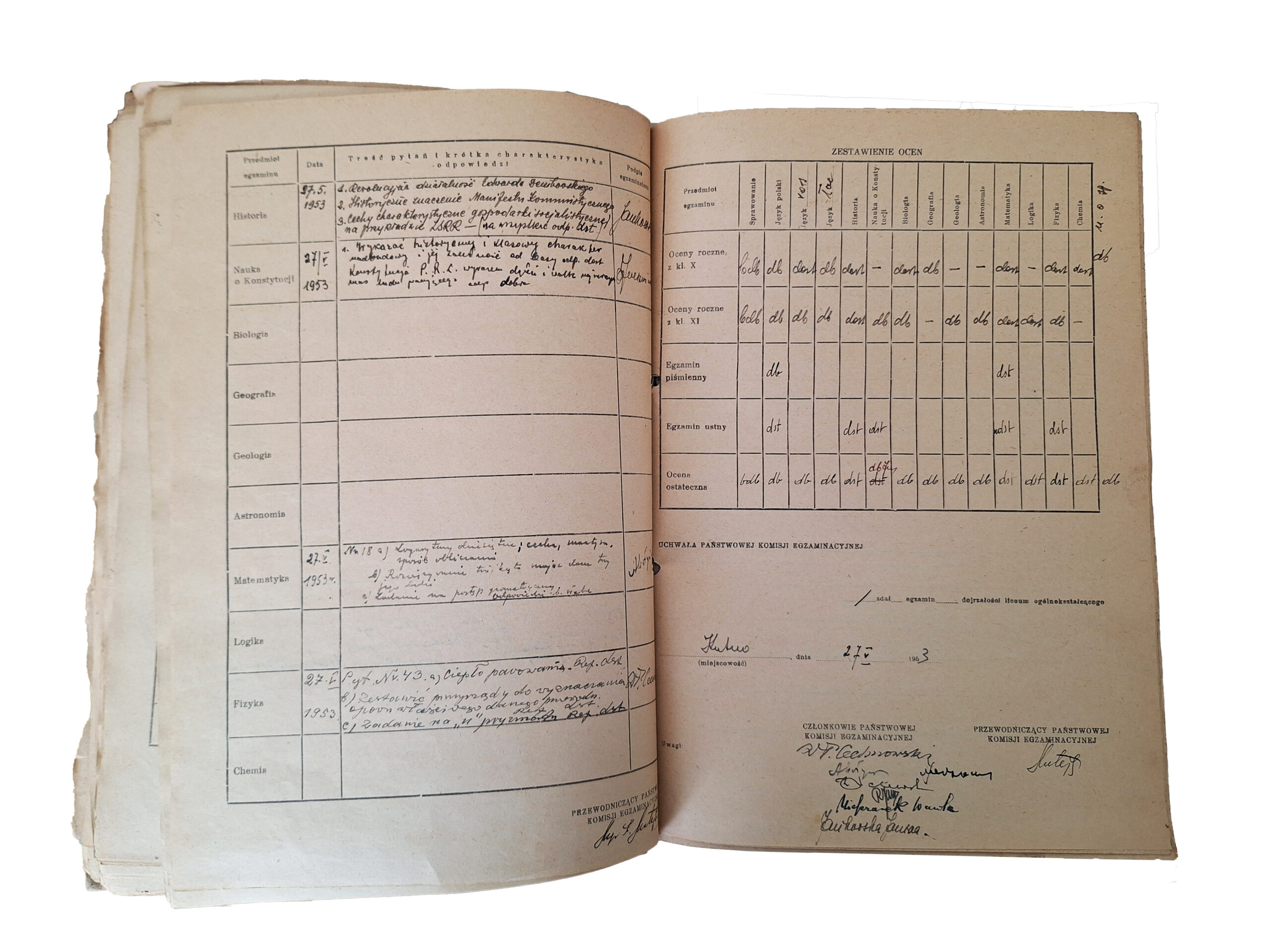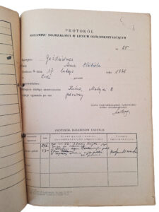 - Protokół egzaminu dojrzałości w Liceum Ogólnokształcącym. Rok 1953. Protokół nr 25 Anny Goździalskiej.